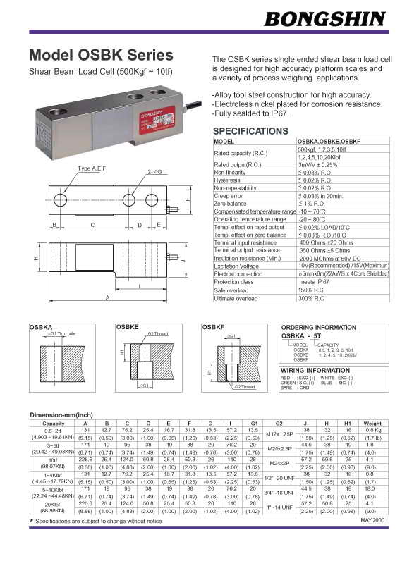 | 產(chǎn)品名稱:OSBK 懸臂梁稱重傳感器(load cell) |