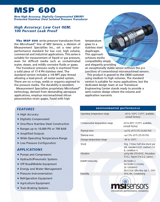 MSP-600 壓力傳感器(pressure sensor)