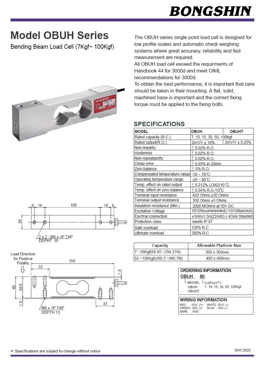 OBUH 懸臂梁稱重傳感器(load cell)